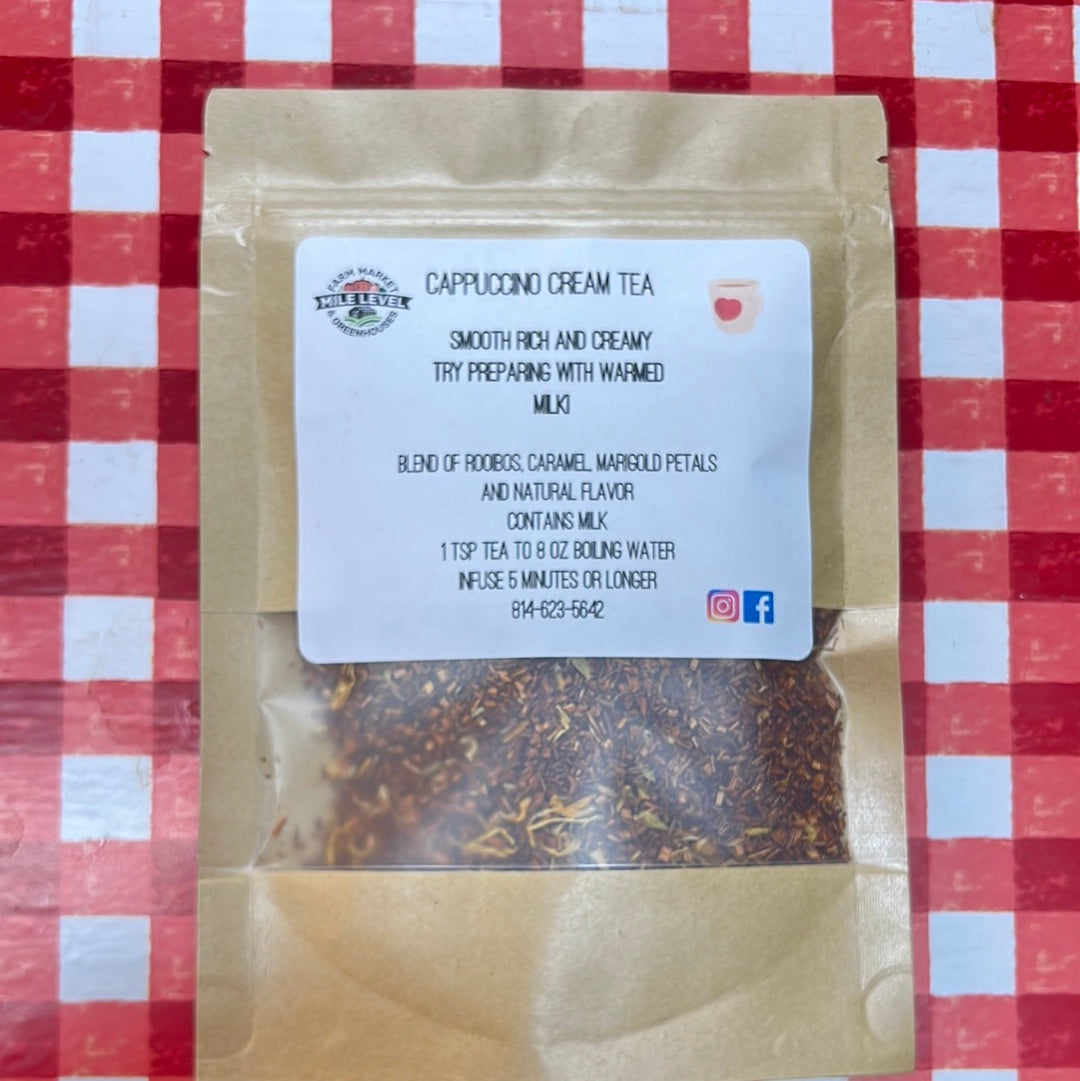 blend of rooibos. caramel. marigold petals and natural flavor contains milk