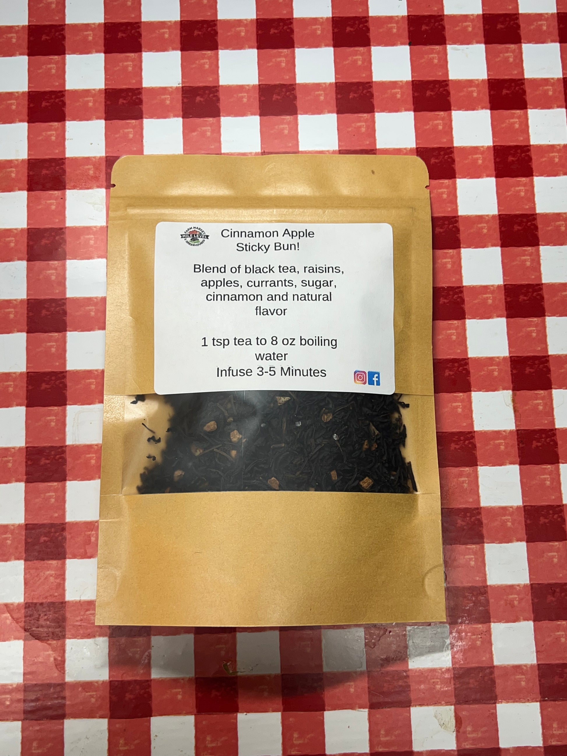 Blend of black tea, raisins, apples, currants, sugar, cinnamon and natural flavor
