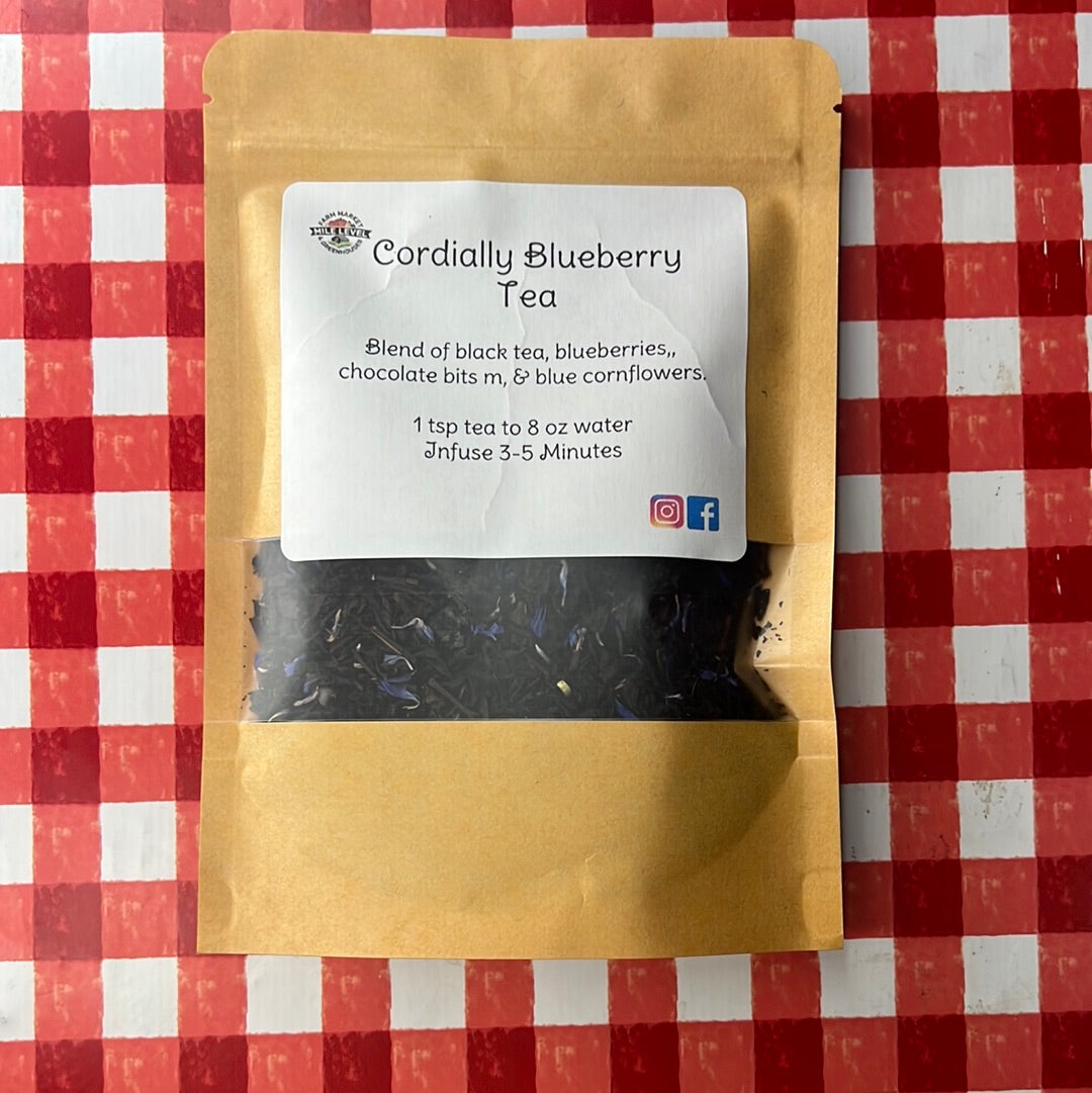 Blend of black tea, blueberries,, chocolate bits, and blue cornflowers