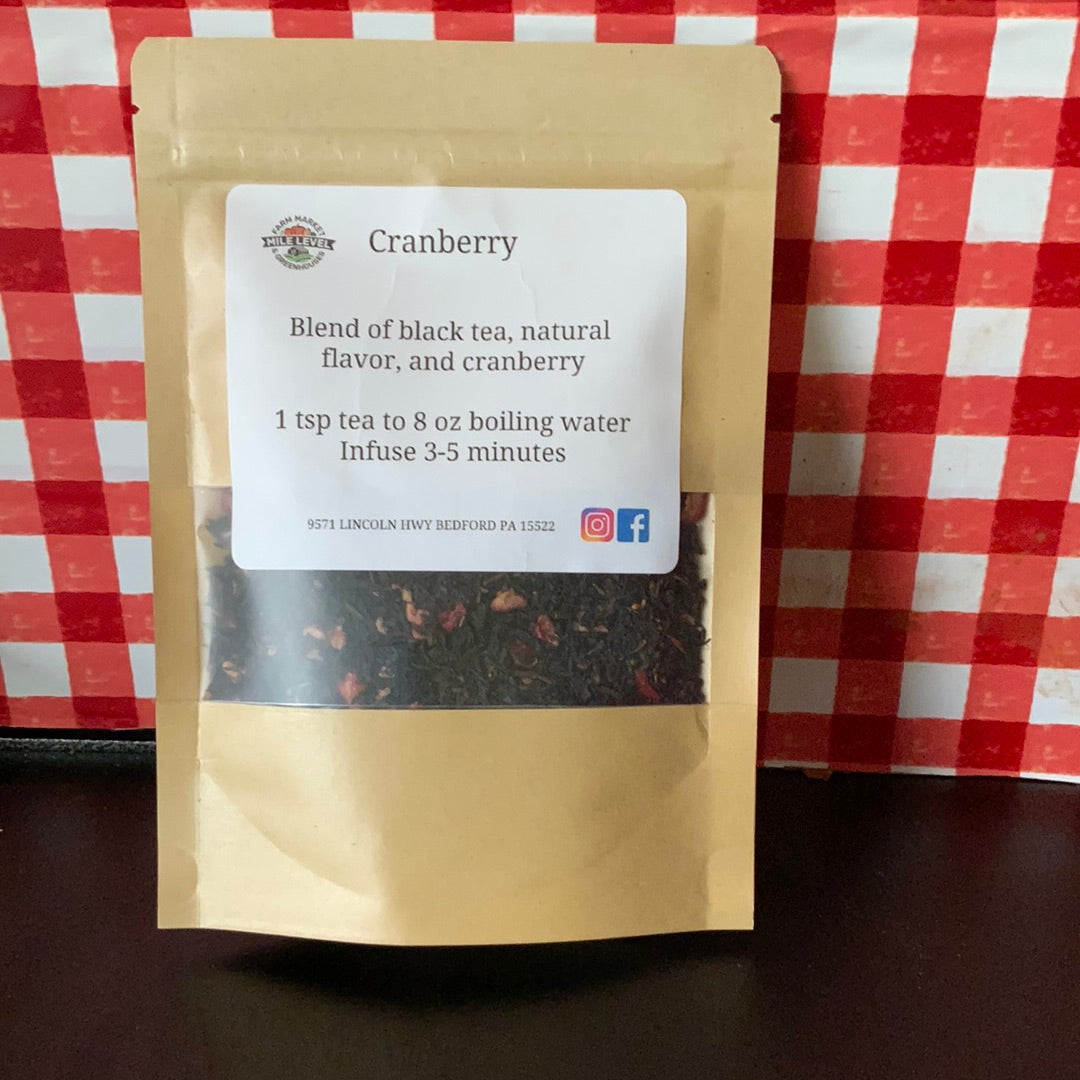 Blend of black tea, natural flavor, and cranberry