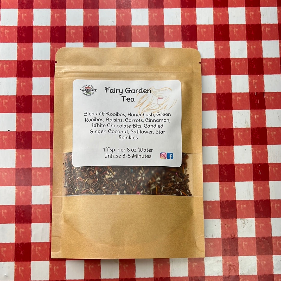 Blend Of Rooibos, Honeybush, Green Rooibos, Raisins, Carrots, Cinnamon, White Chocolate Bits, Candied Ginger, Coconut, Safflower, Star Spinkles