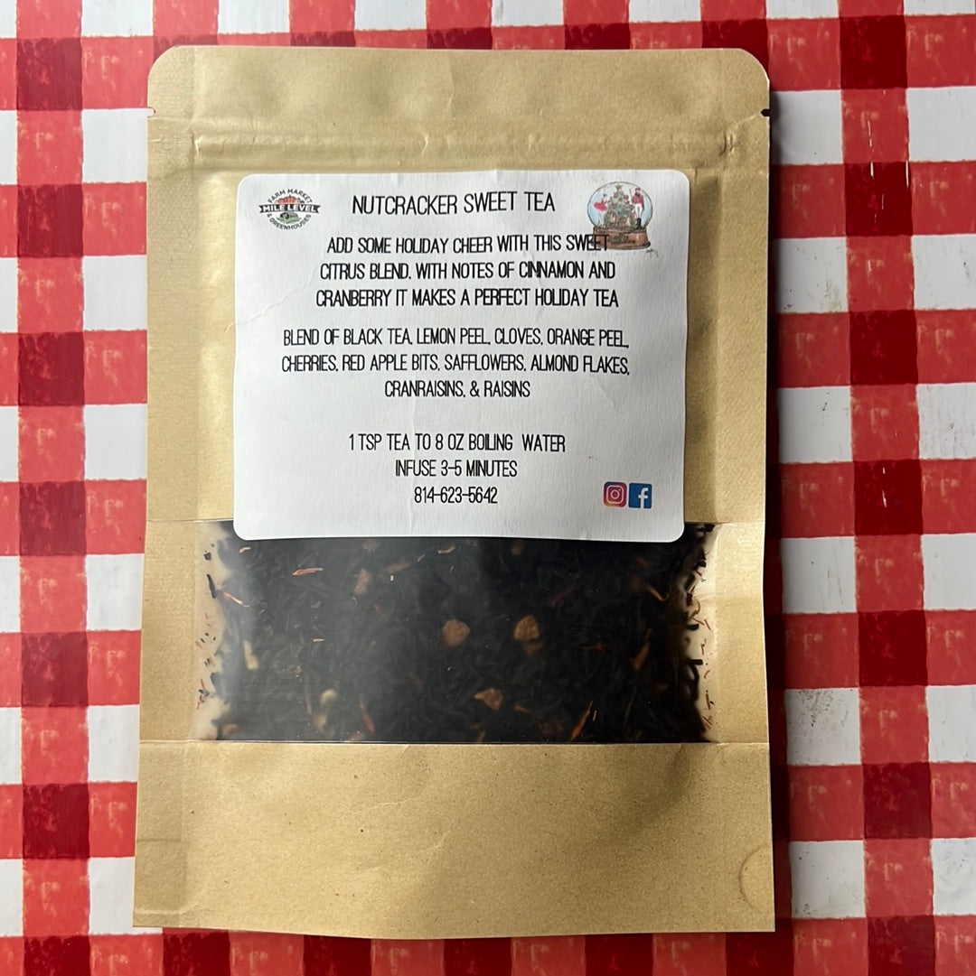 blend of black tea. lemon peel. cloves, orange peel cherries. red apple bits, safflowers. almond flakes, cran-raisins. & raisin