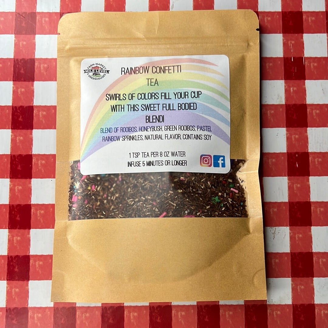 blend of rooibos. honeybush, green rooibos. pastel rainbow sprinkles. natural flavor. contains soy