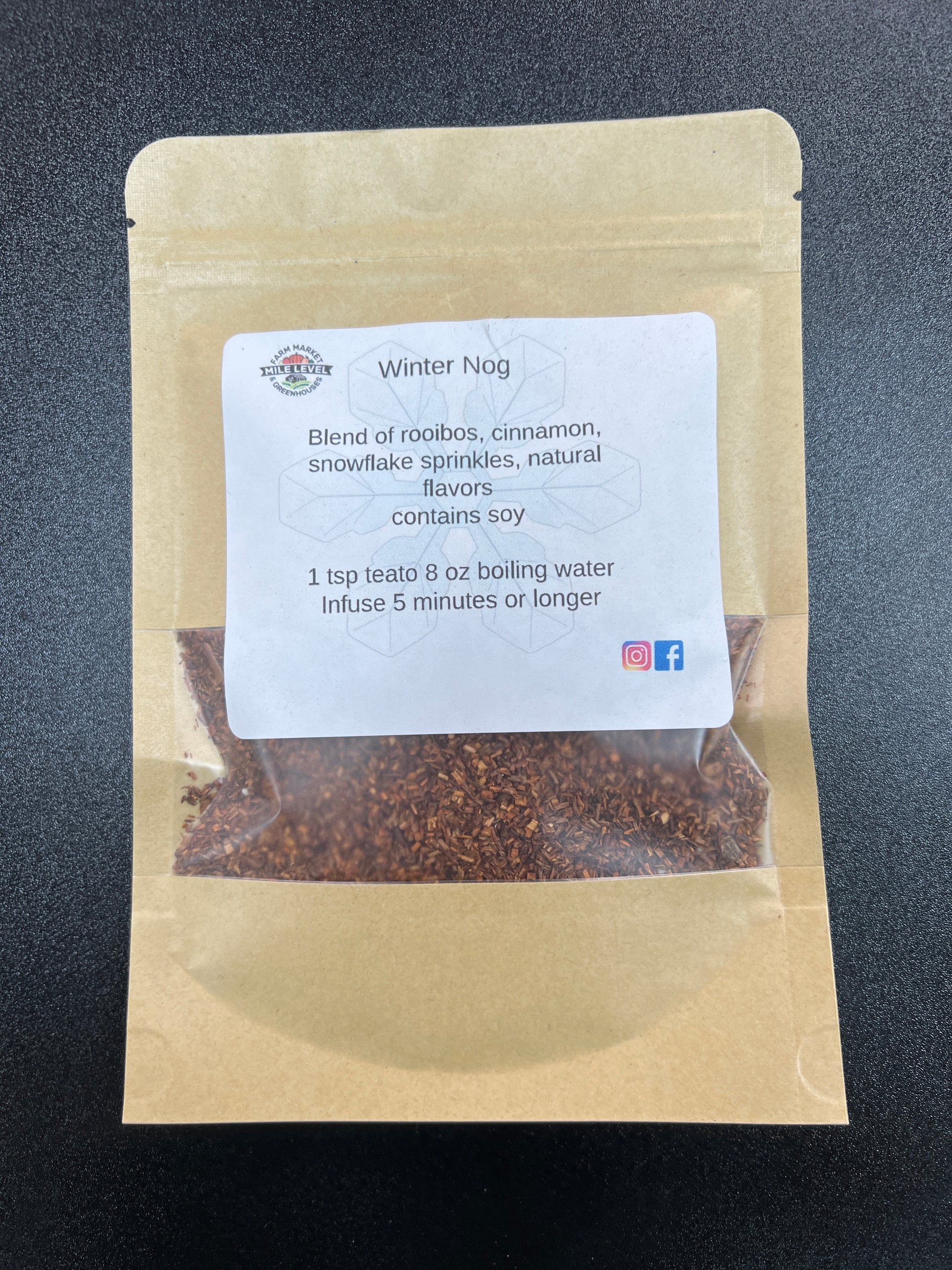 Blend of rooibos, cinnamon, snowflake sprinkles, natural flavor. Contains Soy.